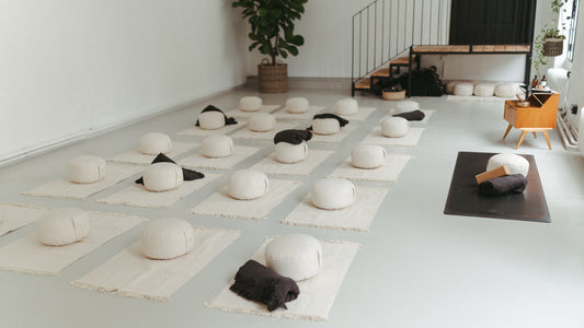 non-slip yoga mats, meditation cushions in different seat heights and shapes,