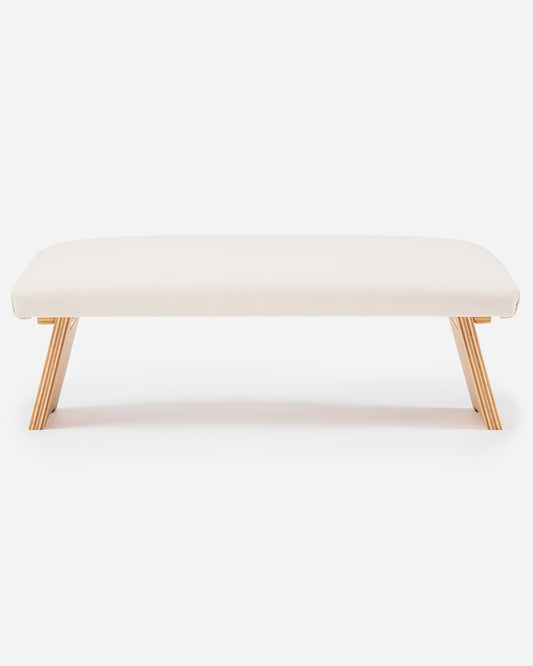 Our meditation bench combines function, appearance and beauty of form and is manufactured with the greatest care and precision in Europe. The foldable legs make it easy to stow and stack. Treated with high-quality, solvent-free wood glaze made of waxes and oils for a smooth, soft surface which emphasises the natural colour of beech wood.