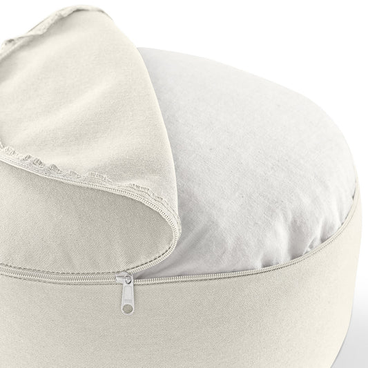 The cover made of cotton (organic) can be easily removed and washed in the washing machine. The meditation cushion is so easy to clean.