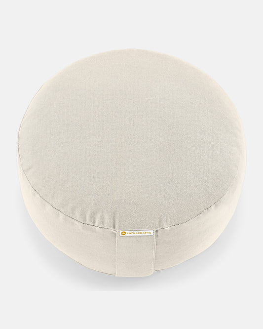 The meditation cushion bestseller in Lotuscraft's-quality. Practical and versatile round cushion, with separately removable cover, made from robust organic fabric.