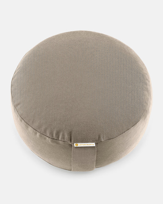 The meditation cushion bestseller in Lotuscraft's-quality. Practical and versatile round cushion, with separately removable cover, made from robust organic fabric.