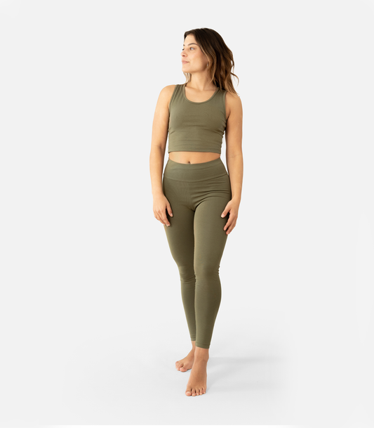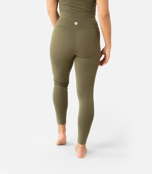 The high-waisted waistband ensures a perfect fit for all exercises and situations. Our yoga leggings are fairly and ecologically produced and certified according to the GOTS organic standard .