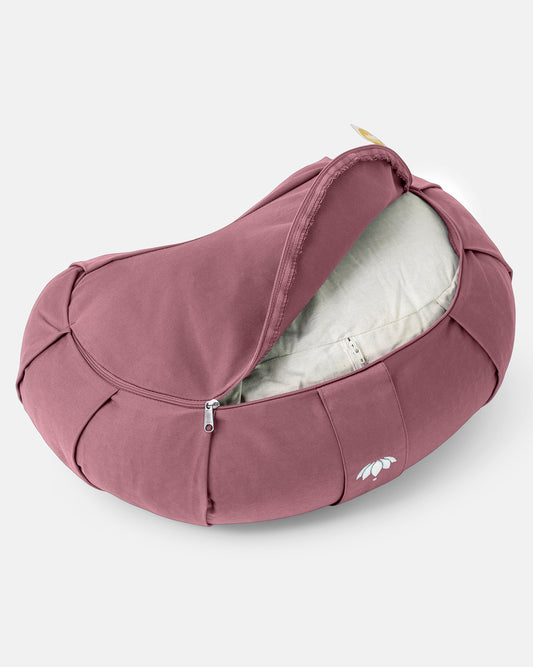 Der Bezug aus Baumwolle (kbA) kann ganz einfach abgenommen werden und in der Waschmaschine gewaschen werden. Das Meditationskissen lässt sich so einfach reinigen.