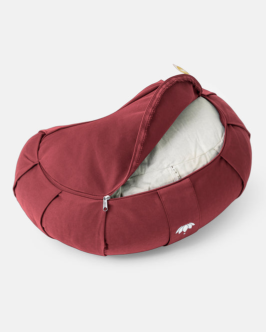 Der Bezug aus Baumwolle (kbA) kann ganz einfach abgenommen werden und in der Waschmaschine gewaschen werden. Das Meditationskissen lässt sich so einfach reinigen.