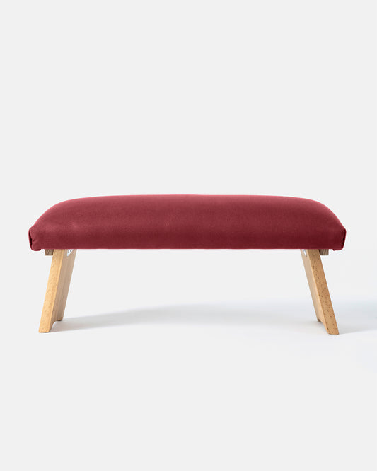 Meditationsbank in der größeren Ausführung mit gepolsterter Sitzfläche.