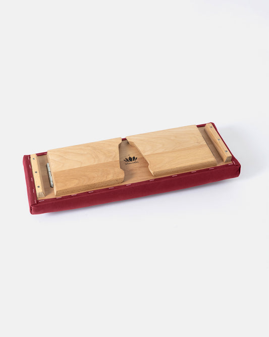 Die Meditationsbank aus massivem Buchenholz wird mit Sorgfalt und Präzision in Europa hergestellt. Die lösungsmittelfreie Holzlasur unterstreicht die natürliche Holzfarbe und sorgt für eine glatte und weiche Oberfläche.