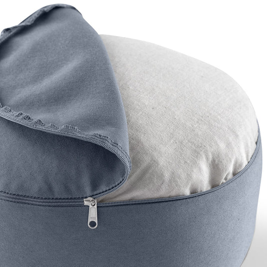 Der Bezug aus Baumwolle (kbA) kann ganz einfach abgenommen werden und in der Waschmaschine gewaschen werden. Das Meditationskissen lässt sich so einfach reinigen.