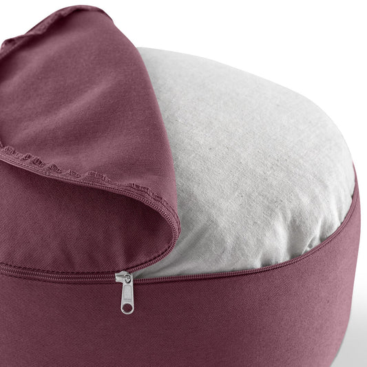 Der Bezug aus Baumwolle (kbA) kann ganz einfach abgenommen werden und in der Waschmaschine gewaschen werden. Das Meditationskissen lässt sich so einfach reinigen.