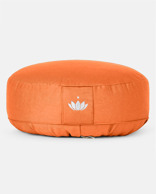 Der Meditationskissen-Klassiker, extra niedrig, aus robustem Bio-Stoff, mit eingenähter Lotus-Bestickung am Haltegriff, die vielseitige Sitzgelegenheit für Flexible und Fortgeschrittene.