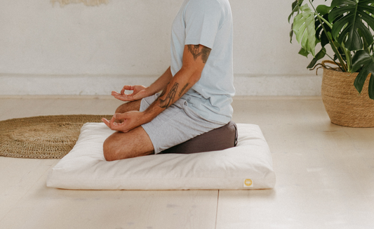 Das runde Lotuskissen lässt sich optimal mit einer Zabuton Meditationsmatte von Lotuscrafts kombinieren. Mit Matte und Kissen hat man somit eine noch bessere Unterstützung während der Meditation.