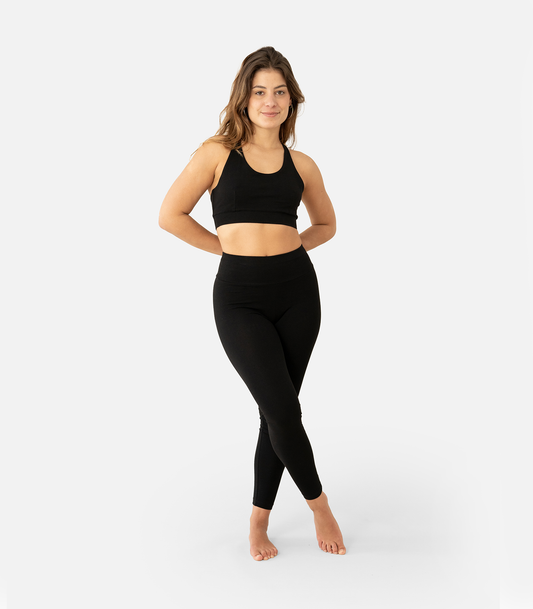 Erlebe den höchsten Tragekomfort und angenehme Passform dank weicher Bio-Baumwolle und Elasthan, der sich natürlich und gleichzeitig elastisch anfühlt, während das breite Unterbrustband für den nötigen Support sorgt. Eignet sich ideal für deine dynamische Vinyasa oder Hot Yoga Praxis.