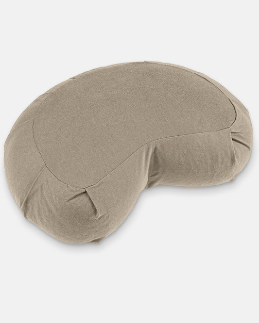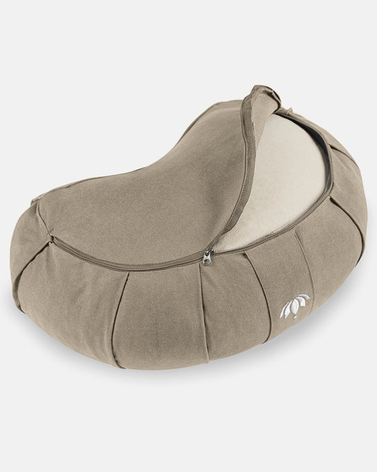 Das Zafu-Meditationskissen im ergonomischen Halbmond-Design, ideal für das Sitzen mit übergekreuzten Beinen